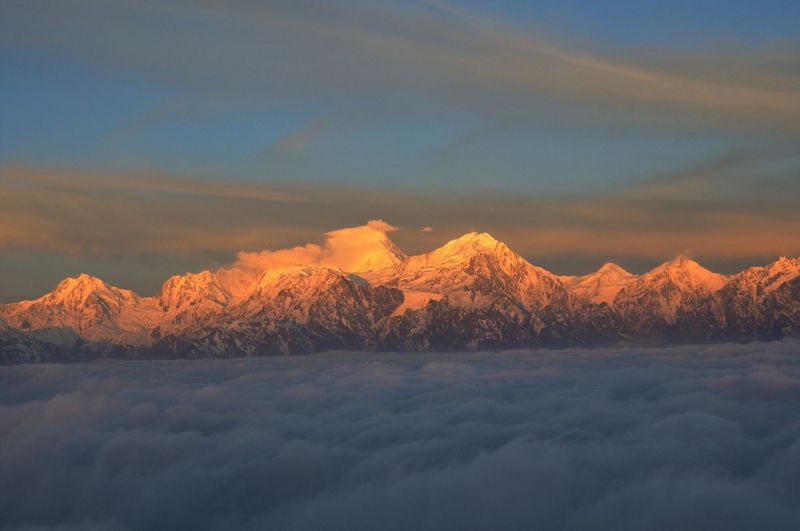 (温馨提示:子梅垭口位于贡嘎山主峰的西南方向,日出时是逆光,没有日落那么壮观啦。)