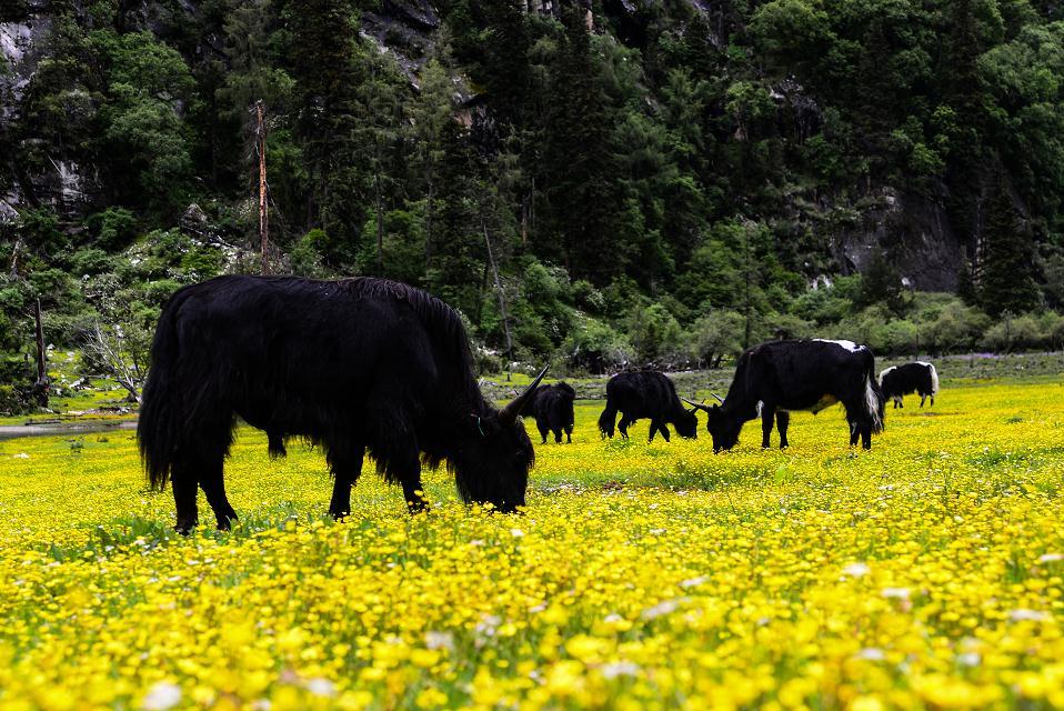 今日景点:雪山(幺妹峰、骆驼峰)长坪沟风景,高山草甸、牦牛群