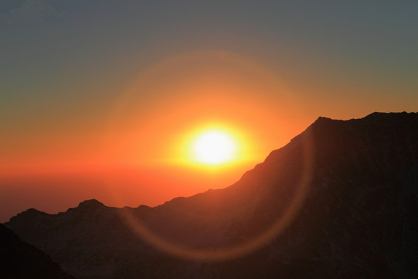 温馨提示:子梅垭口位于贡嘎山主峰的西南方向,日出时是逆光,没有日落那么壮观啦。
