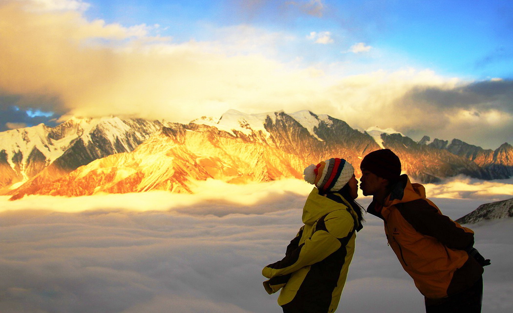 B.看贡嘎日出、日落(日照金山),尽情的拍摄贡嘎云海;