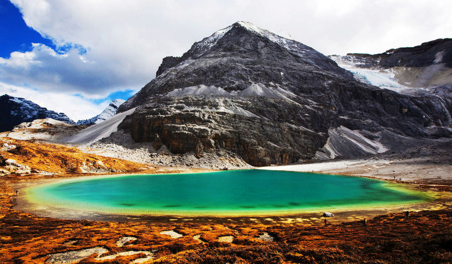 D5:亚丁村—18KM—洛绒牛场—5KM-五色海、牛奶海—108KM-稻城 早餐6:30起床早餐后,乘坐景区内观光车抵达扎灌崩,领队带队徒步前往洛绒牛场(路程约3h,海拔4150米)(也可选择乘坐景区内的电瓶车前往),观赏央迈勇(文殊菩萨,海拔5958米)和夏洛多吉(金刚手菩萨,海拔5958米)两座神山,之后向五色海(海拔4800米)、牛奶海行进(路程约3h,海拔4600米),队员亦可选择骑马或坐电瓶车游览,费用自理。下午16:00景区门口集合,乘观光车返回日瓦游客中心,再换成我们的旅游车前往稻城(海拔3700米)休息,行驶约3小时。 (今日行程较为劳累,如天气晴好,景色极佳。无论选择何种游览方式,一定注意安全。五色海海拔较高,天气变化异常,随时可能遇到大风暴雨而无法一睹其容貌,可遇不可求,请调整良好心态。行程中没有补给点,请准备好自足的水和路餐。) 今日景点:三神山、牛奶海、五色海、洛绒牛场 住宿:稻城酒店2人标间 餐饮:含早晚餐,午餐自理 海拔:亚丁村(海拔2900)、牛奶海4600米、稻城3700米